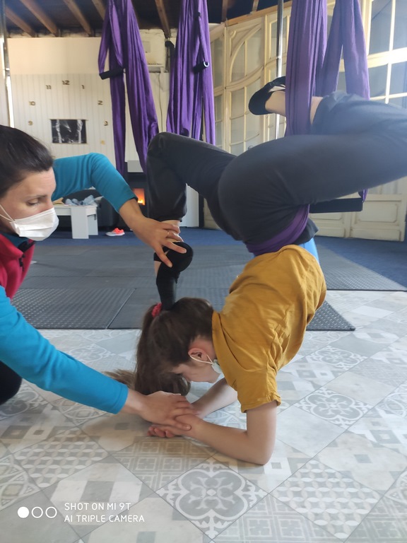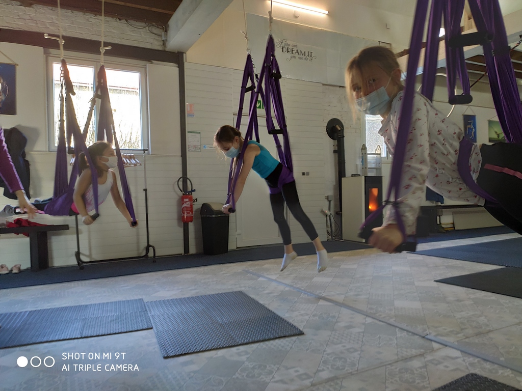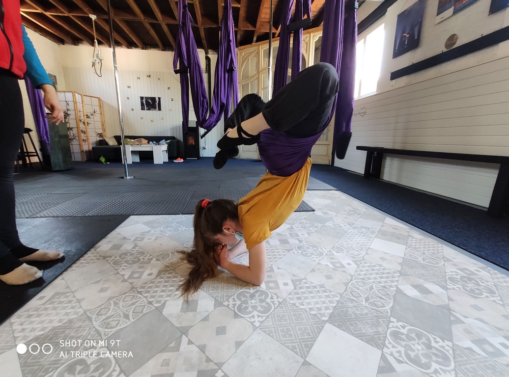 Inspirée des arts aériens du cirque et du yoga, la pratique du yoga en apesanteur amène une dimension à la fois ludique et thérapeutique.